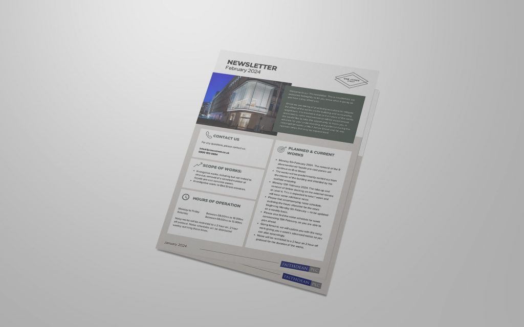 Your latest newsletter on the 1 James Street update. These are produced on a regular basis to let you know what is going on and how it may affect you.